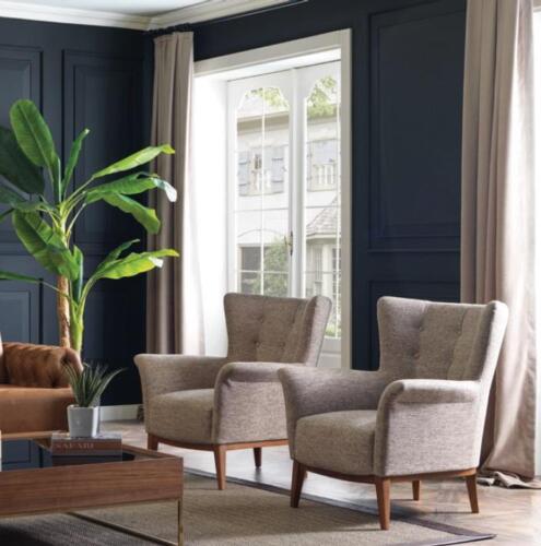 Chesterfield Sessel Couch Polster Luxus Holz mit Textil Stil Modern Lounge
