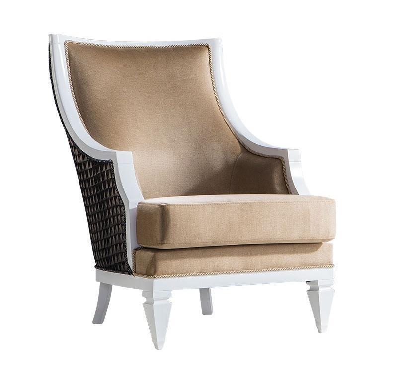 Hellbeiger Sessel Armlehnensessel Einsitzer Holzgestell Holz Lehnsessel