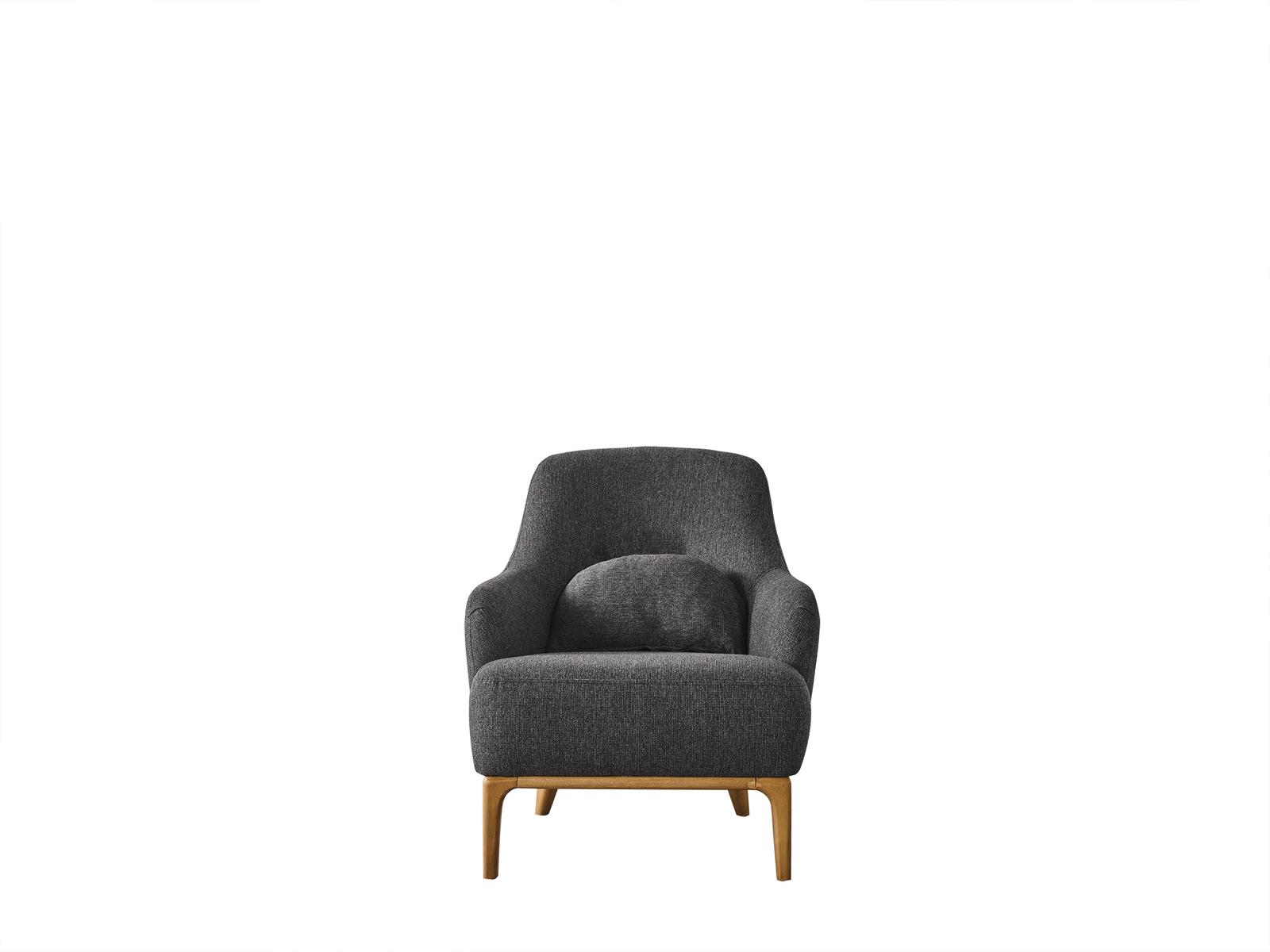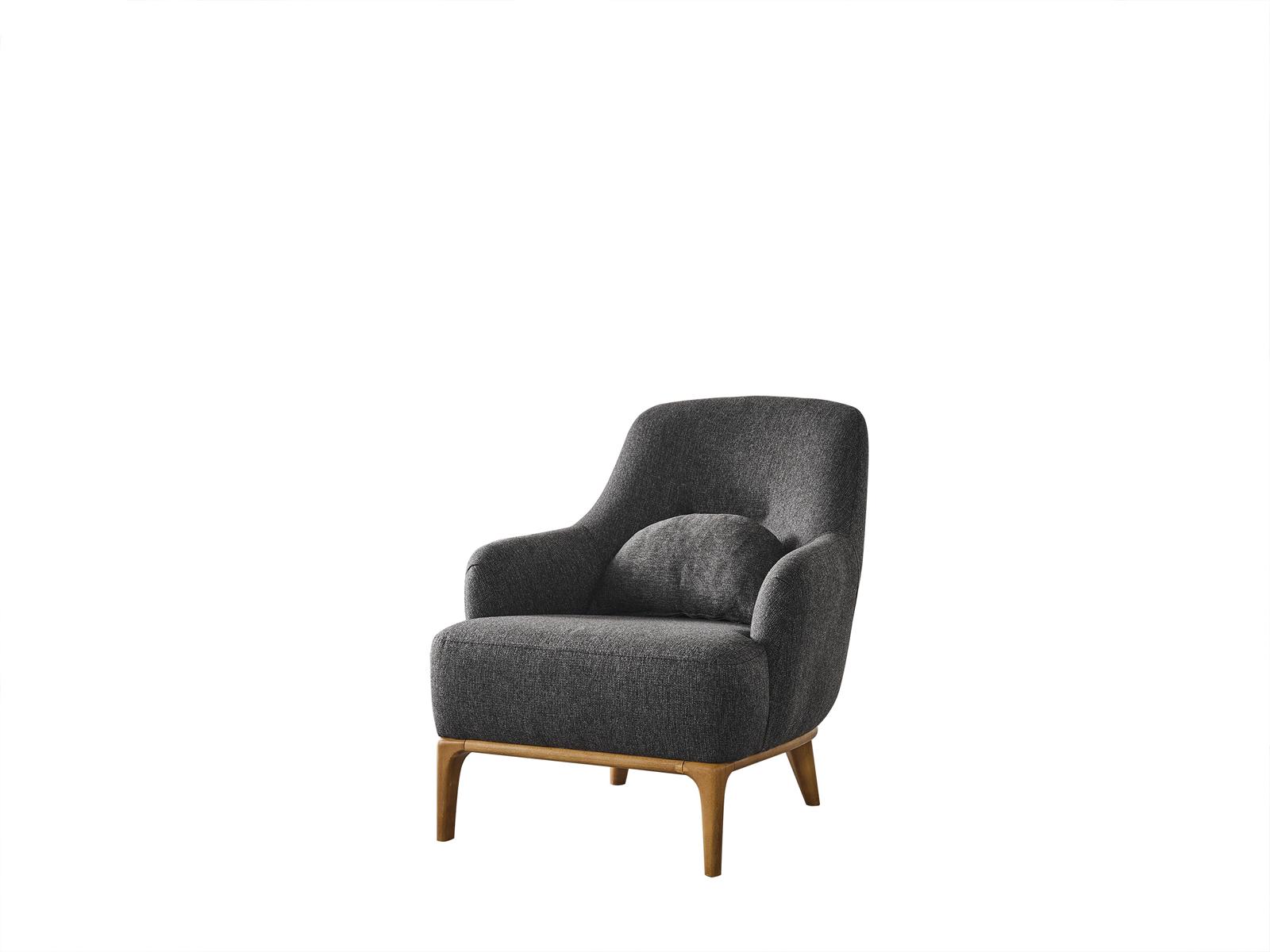 Sessel Design Luxus Polster Lounge grau Modernes Wohnzimmer Holz Textil