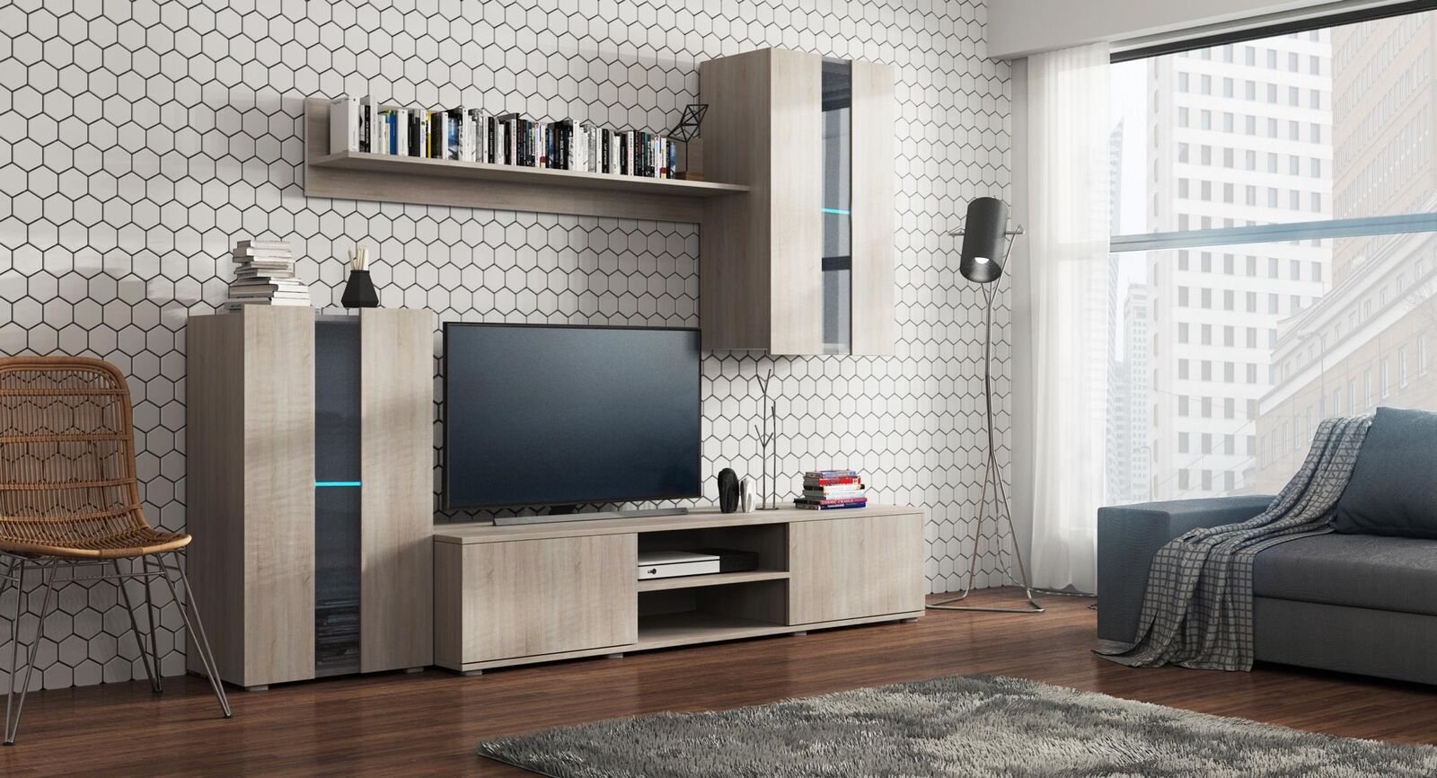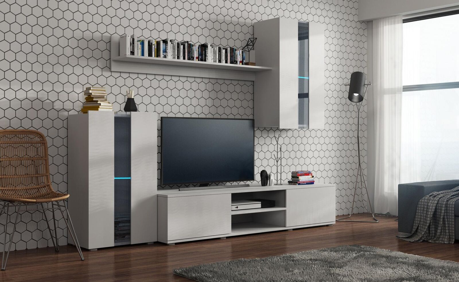 Set von modernen Wänden, Vitrinen, Regalen, Schränken für Wohnzimmer, Wände im modernen Stil