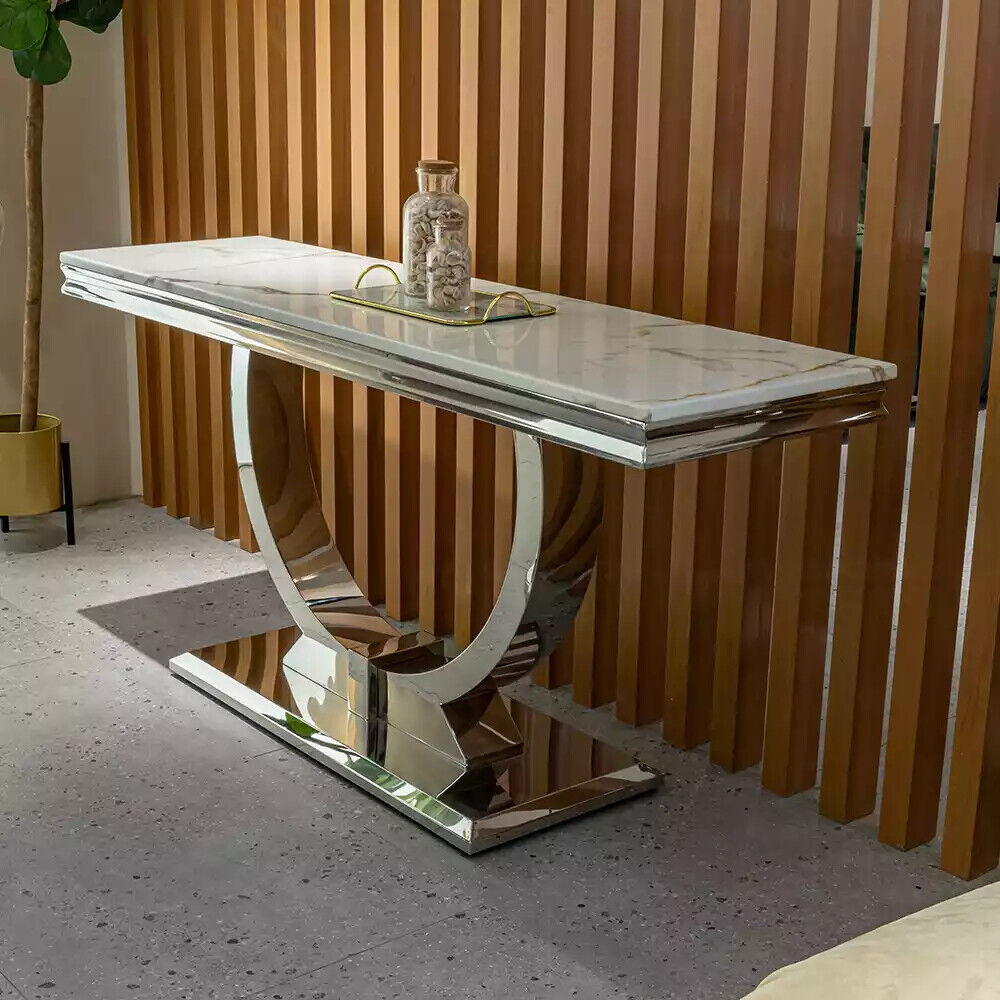 Silbernes Sideboard Konsolen Tisch Luxus Tisch Silber Chrom 120x40cm