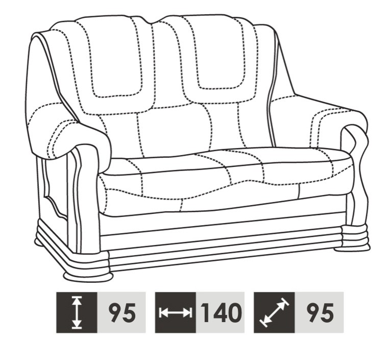 2x2 Sitzer: ca. 140 x 95 x 95 cm
