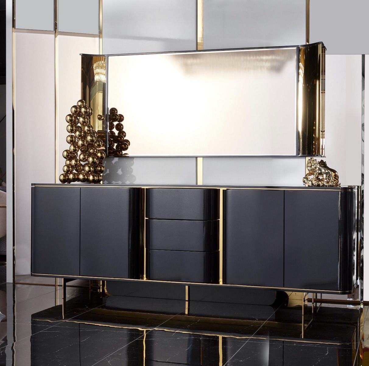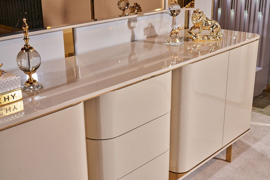Wohnzimmer Anrichte Spiegel Material Holz mit Metall Stil Modern Beige