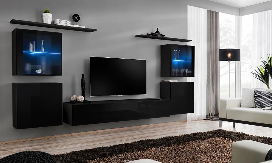 Schwarz Wohnwand Wohnzimmermöbel Luxus Wand Schrank Komplett Designer Neu