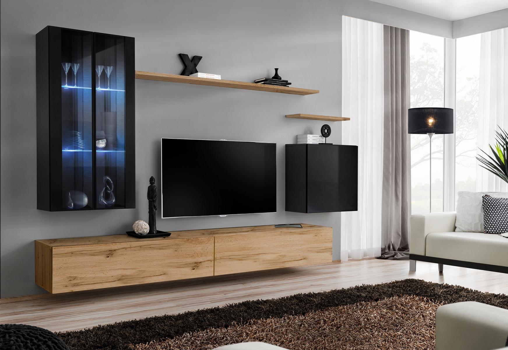 Wohnwand Hänge Vitrine Wandschrank Designer TV-Ständer Einrichtung Regale Modern