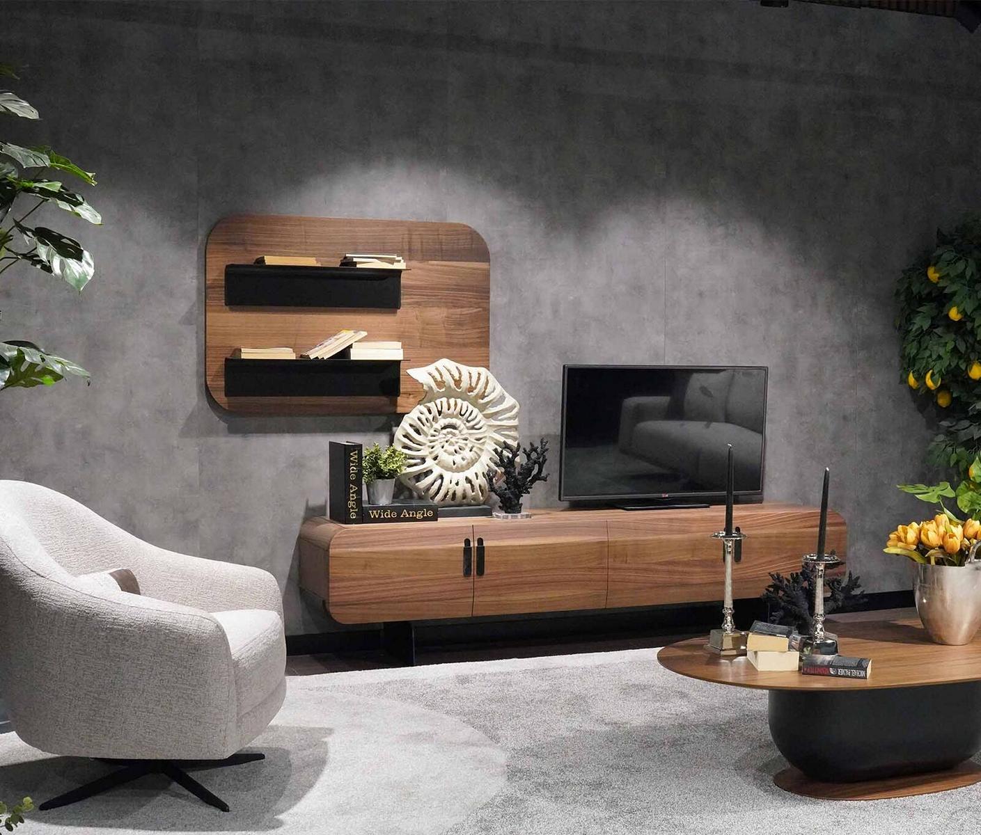 Complete, Living Room Set, Brown, New Furniture, Wall Shelf