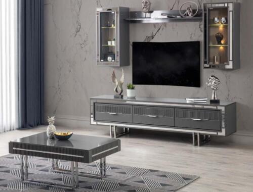 Wohnwand TV Ständer Schranke Couchtisch RTV Lowboard Grau Set 3tlg