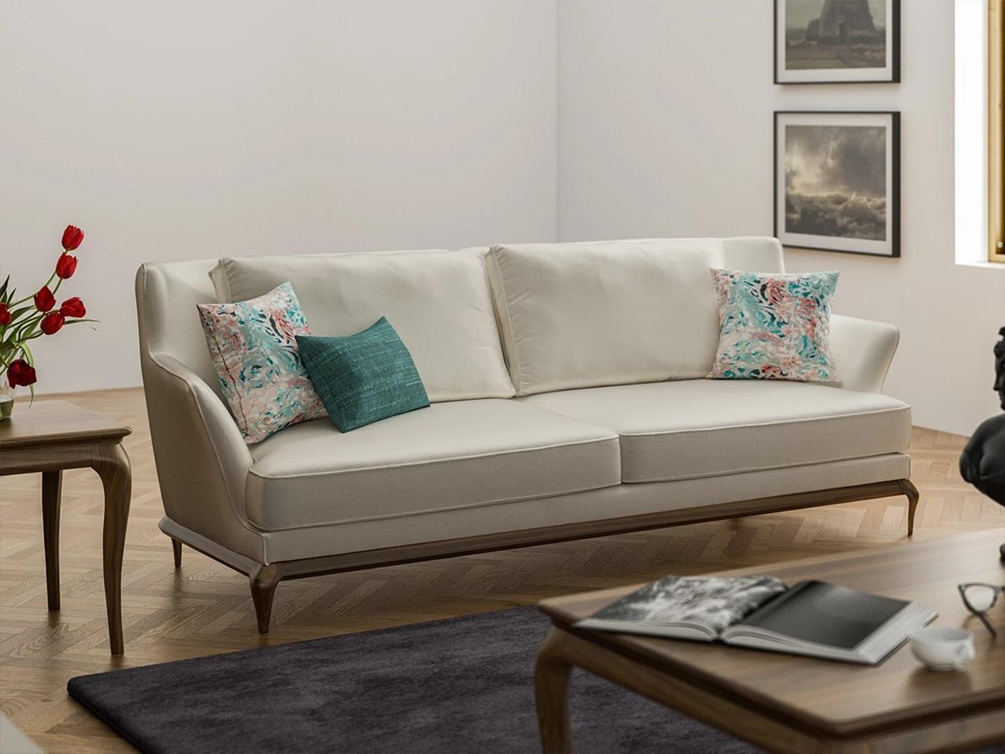 Verleihen Sie Ihrem Wohnzimmer mit dem modernen Dreisitzer-Weiß-Sofa einen Hauch von Eleganz und Komfort! Dieses stilvolle Einrichtungsstück bietet Ihnen nicht nur erstklassige Qualität und eine zeitgemäße Designästhetik, sondern auch ultimativen Sitzkomfort. Mit Maßen von ca. 235 x 100 x 85 cm passt dieses exquisite Sofa perfekt in Ihr Zuhause und wird sicherlich zum Mittelpunkt Ihres Wohnbereichs. Hergestellt aus hochwertigem Holz und Textil, kombiniert es Langlebigkeit mit einem modernen Look. Wählen Sie aus einer Vielzahl von Farben wie Taubengrau, Lavendelgrau, Blassgrün und mehr, um das perfekte Sofa zu finden, das zu Ihrem persönlichen Stil passt. Bei Fragen zu Farb- oder Größenanpassungen stehen wir Ihnen gerne zur Verfügung. Bringen Sie mit diesem dreisitzigen Sofa Eleganz und Modernität in Ihr Zuhause und genießen Sie entspannte Stunden in stilvollem Ambiente!